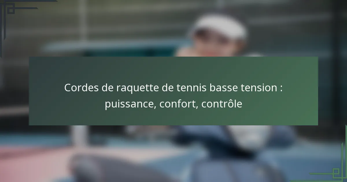 Qu’est-ce que les cordes de raquette de tennis à basse tension ?