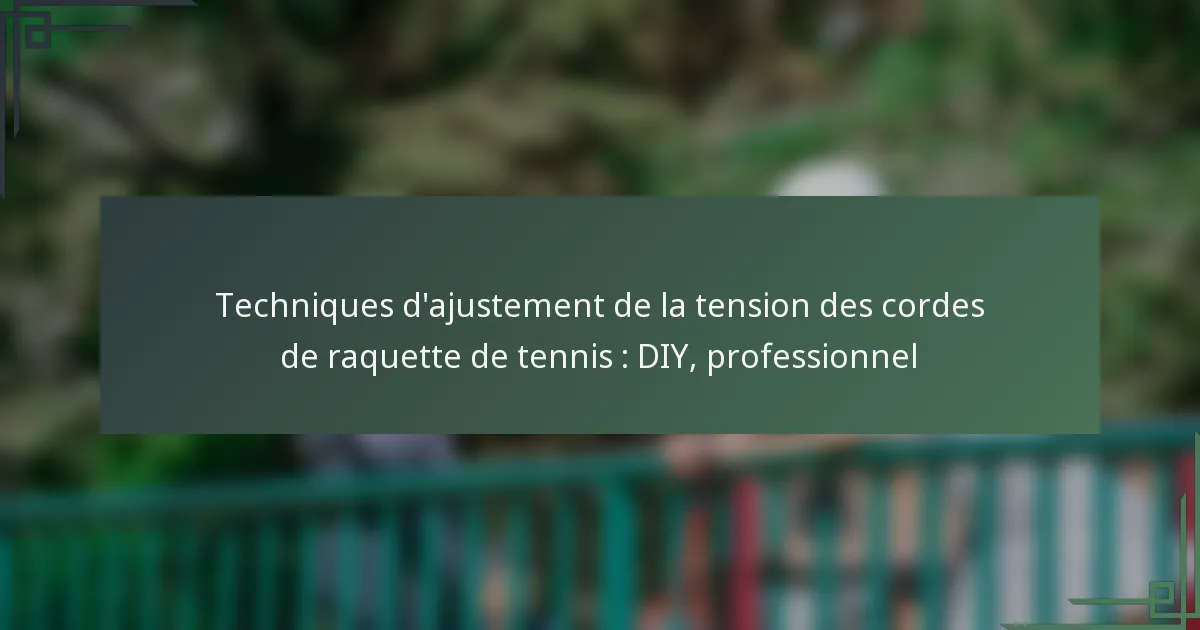 Les techniques professionnelles pour ajuster la tension impliquent des méthodes précises utilisées par des experts pour optimiser la tension des cordes des raquettes de tennis. Ces techniques garantissent que les joueurs obtiennent la meilleure performance et sensation de leurs raquettes, adaptées à leurs styles de jeu et niveaux de compétence individuels.