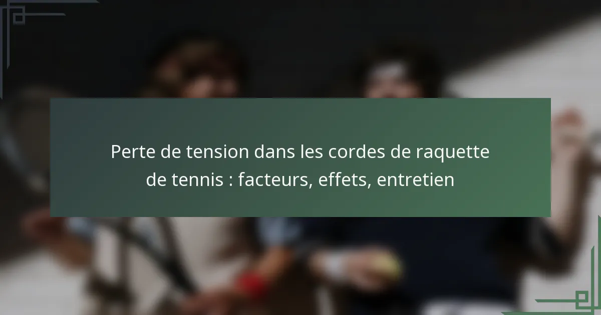 La perte de tension dans les cordes de raquette de tennis est un aspect critique qui peut affecter la performance d’un joueur sur le court. Des facteurs tels que le matériau des cordes, les conditions environnementales et la fréquence de jeu contribuent à ce phénomène, rendant essentiel pour les joueurs de comprendre et de gérer ces éléments. En mettant en œuvre des pratiques d’entretien régulières, y compris un remplacement en temps voulu et un stockage approprié, les joueurs peuvent améliorer la performance de leur raquette et prolonger sa durée de vie.